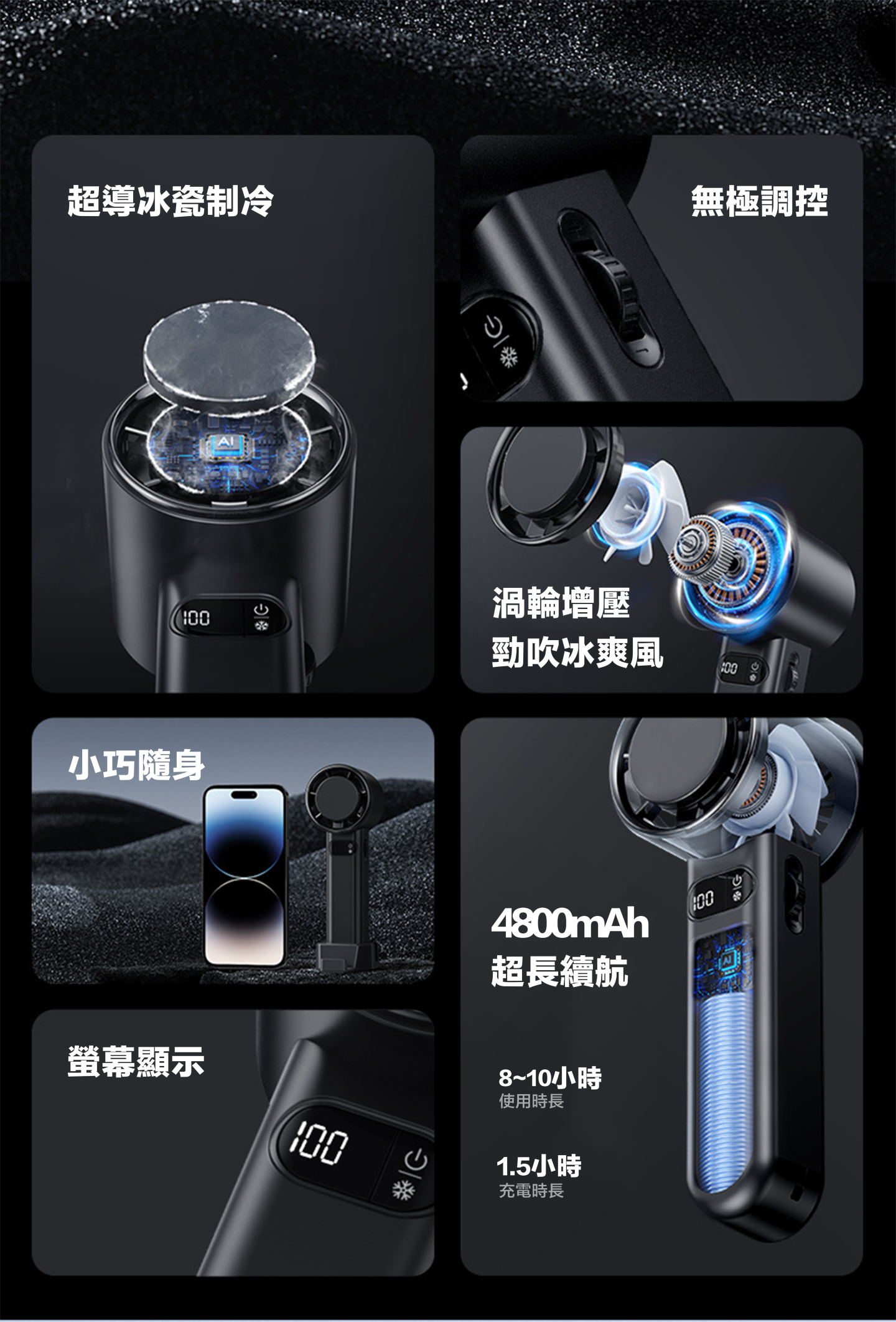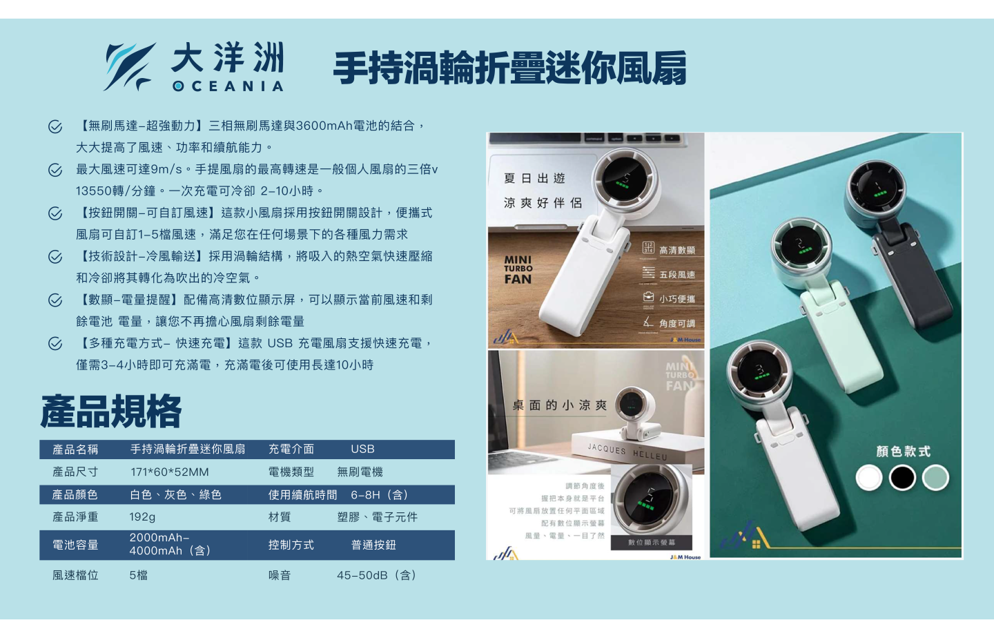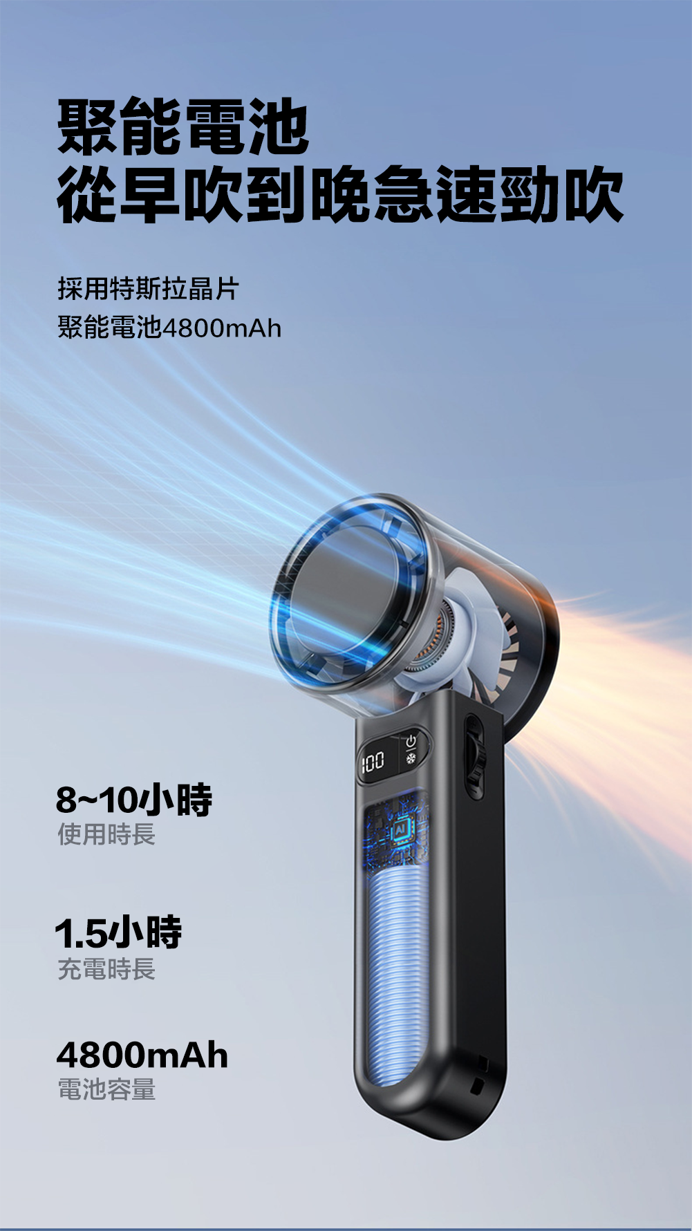 * 使用時間只供參考,產品使用時間會因應環境及電池耗損而有所改變,最長風力是以1 段風及充滿電計算,一切以實物為準。