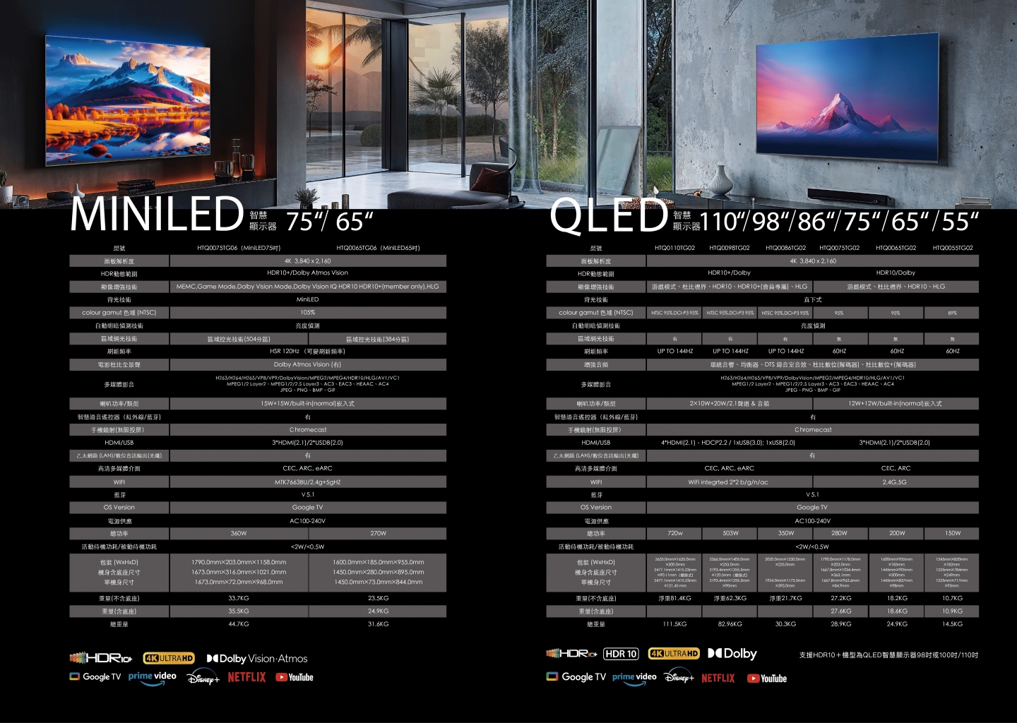 7.具備Google TV 、認證 YouTube、 Netflix 、Disney+…等內建系統