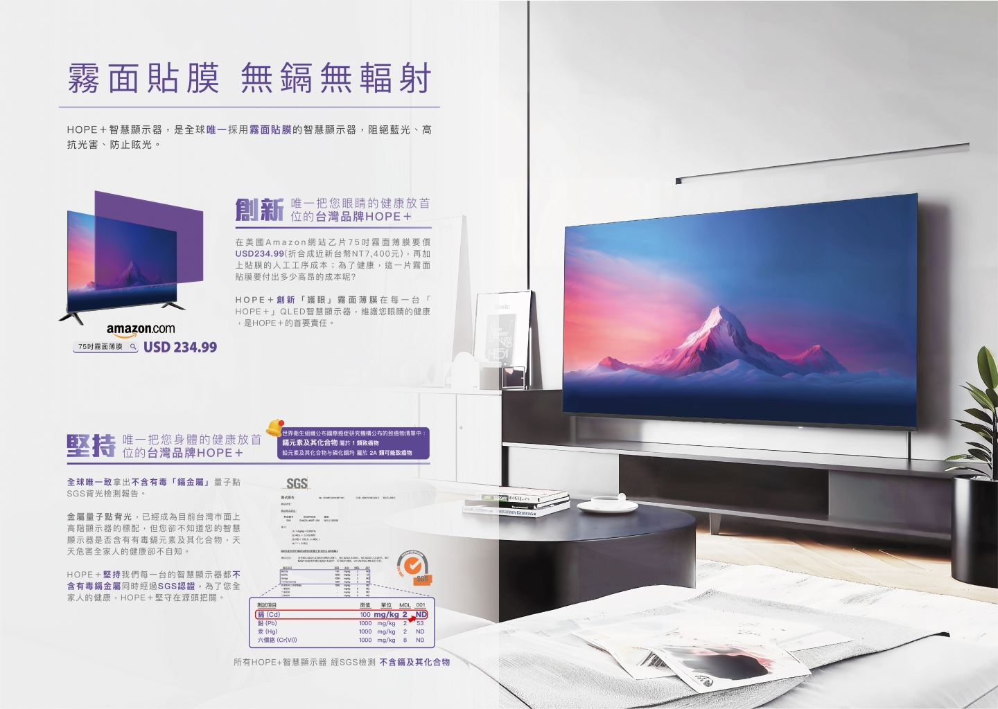 5.四無一低 新世代電視標準, 霧面面板! 無輻射 無光害 無倒影 無鎘毒 阻藍光
