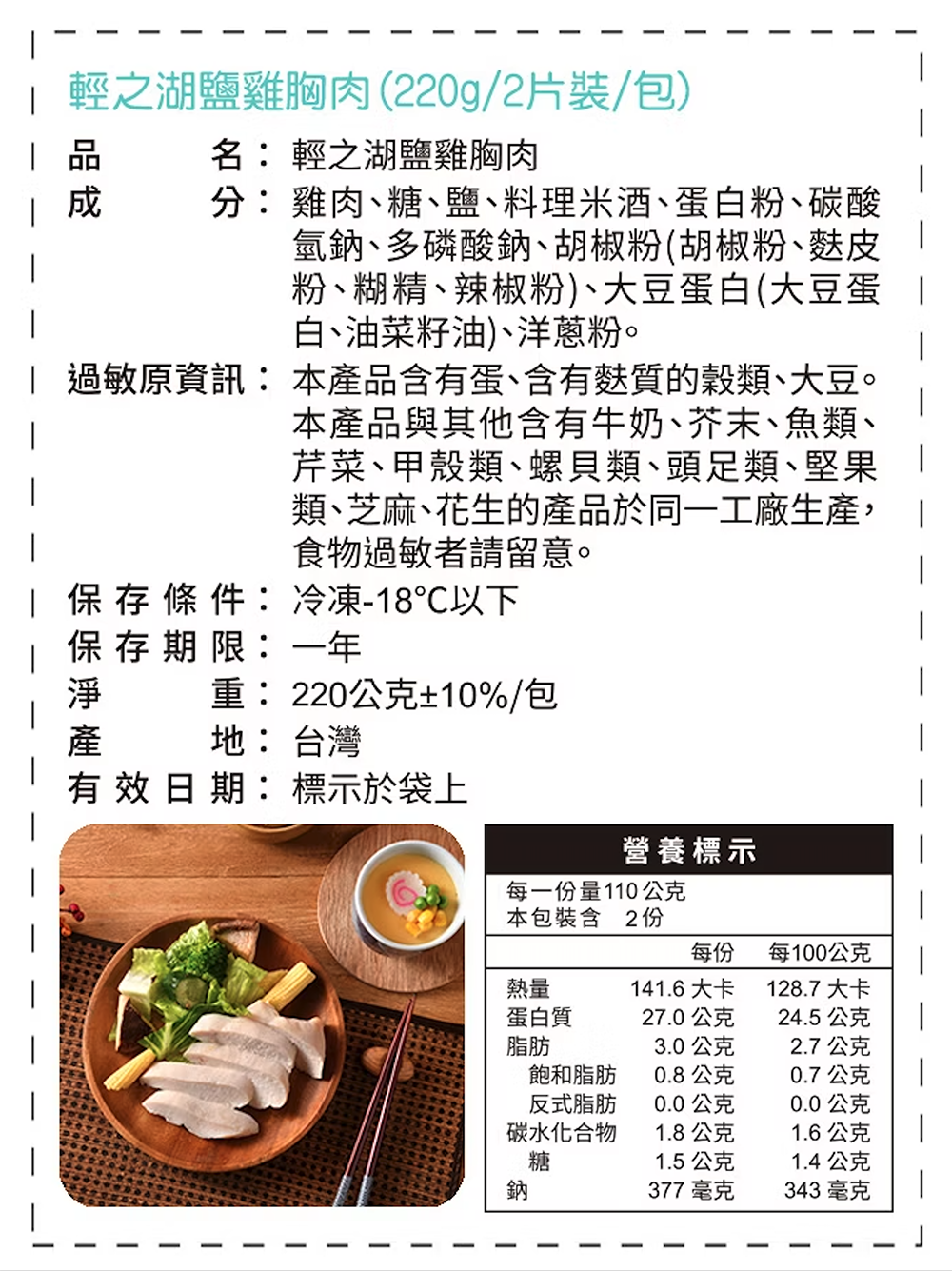 即食雞胸肉-輕之湖鹽(220g/包,2片/包)