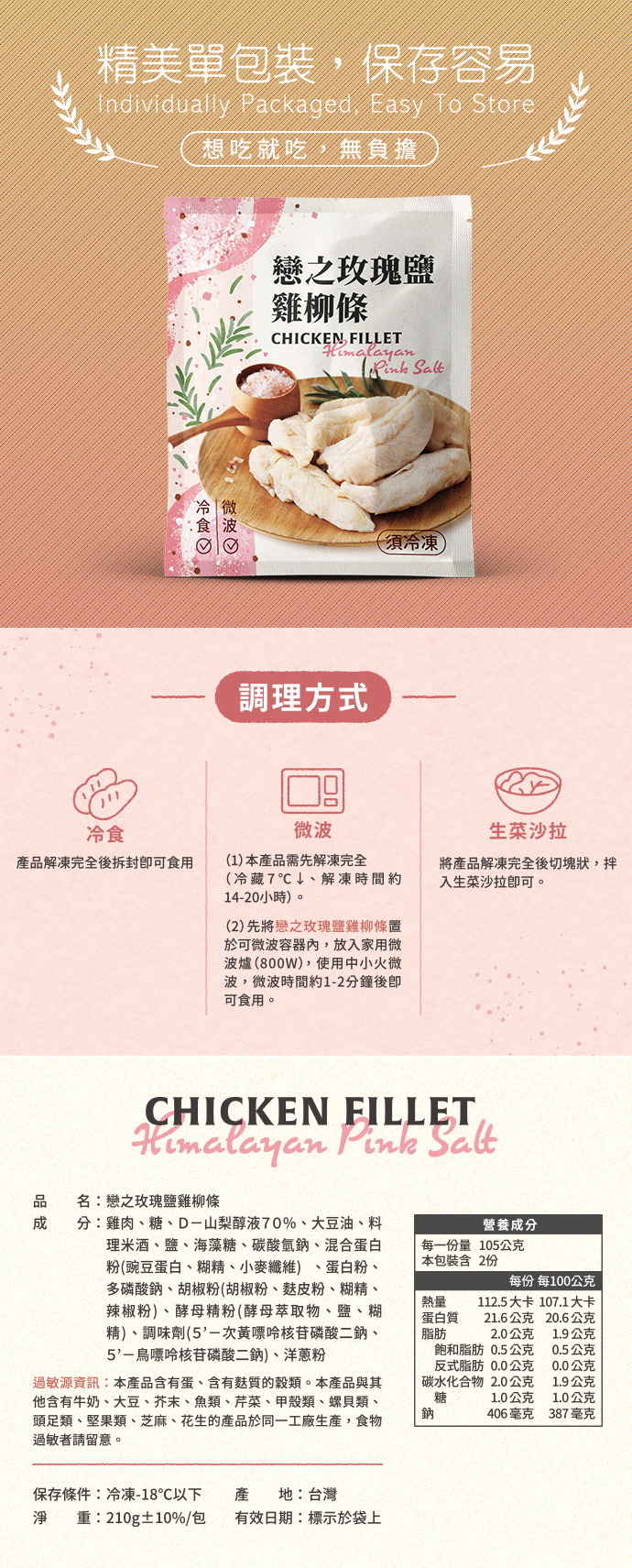戀之玫瑰鹽雞柳條(210g)