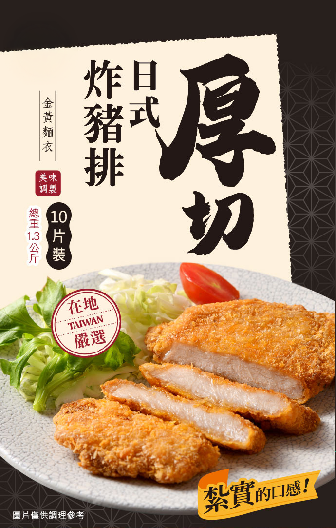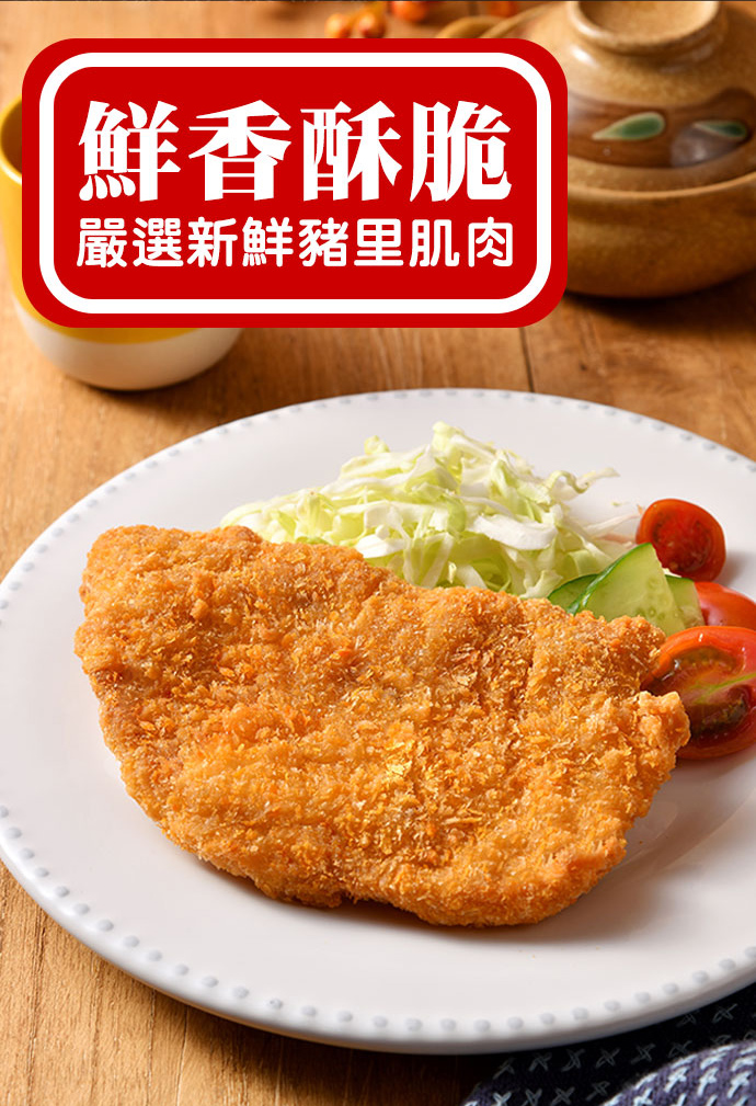 【預炸】厚切日式炸豬排(130g/片,2片/包) 優質豬里肌肉,經過細心處理,厚切保留肉質的鮮嫩多汁。外層裹上黃金比例的麵包粉,炸至金黃酥脆,咬下瞬間,外酥內嫩,肉汁在口中爆發,滿滿的鮮甜與肉香完美融合!