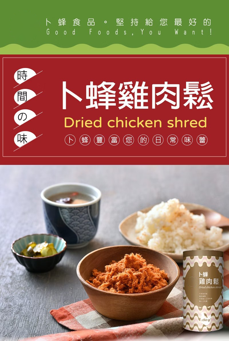 無論是搭配白飯、粥品,還是做為小點心或輕食,卜蜂純雞肉鬆都能帶來滿滿的滋味與滿足感,讓每一餐都更加美味可口!