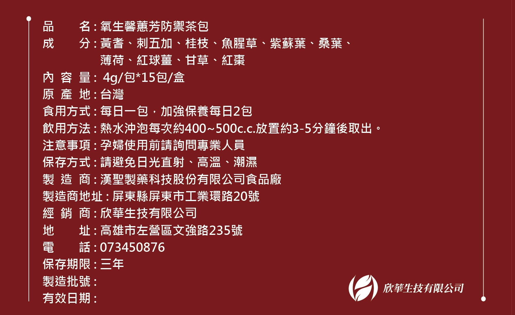 氧生馨蕙芳防禦茶包 回饋點數:280點