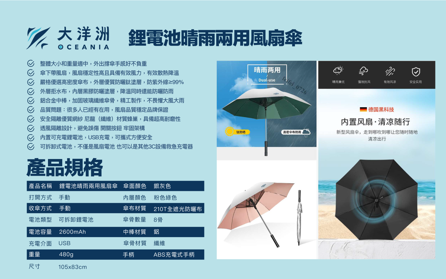 鋰電池晴雨兩用風扇傘 回饋點數:1510點