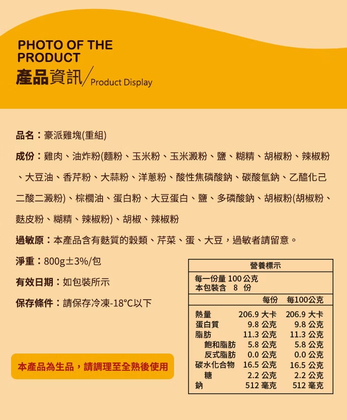 【預炸】豪派雞塊(800g)