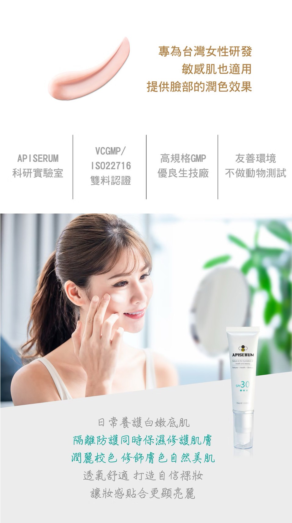 APISERUM 愛比森 淨透無暇隔離粉底乳SPF30★★★30ml/潤色/敏感肌適用 回饋點數:780點